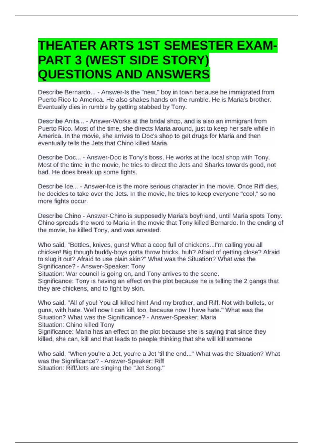 Describe Ice... - Answer-Ice is the more serious character in the movie. Once Riff dies,