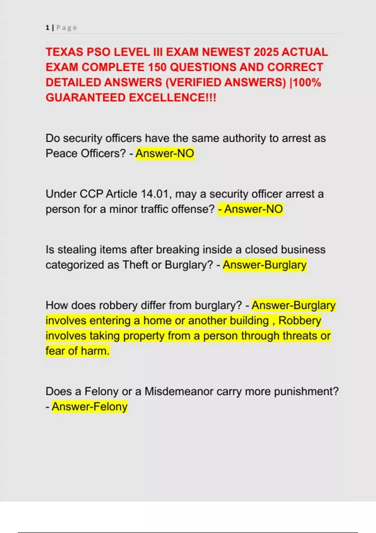 TEXAS PSO LEVEL III EXAM NEWEST 2025 ACTUAL