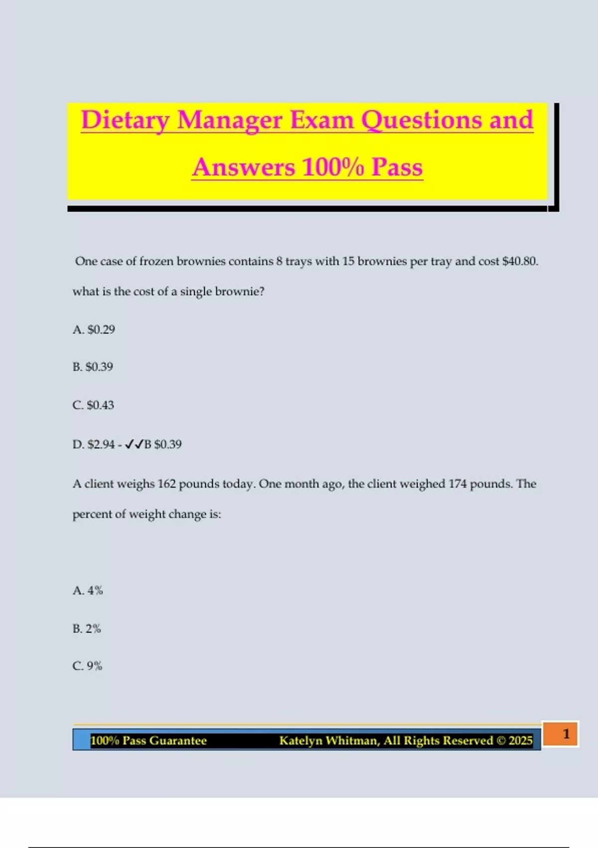 100% Pass Guarantee Katelyn Whitman, All Rights Reserved © 2025 1