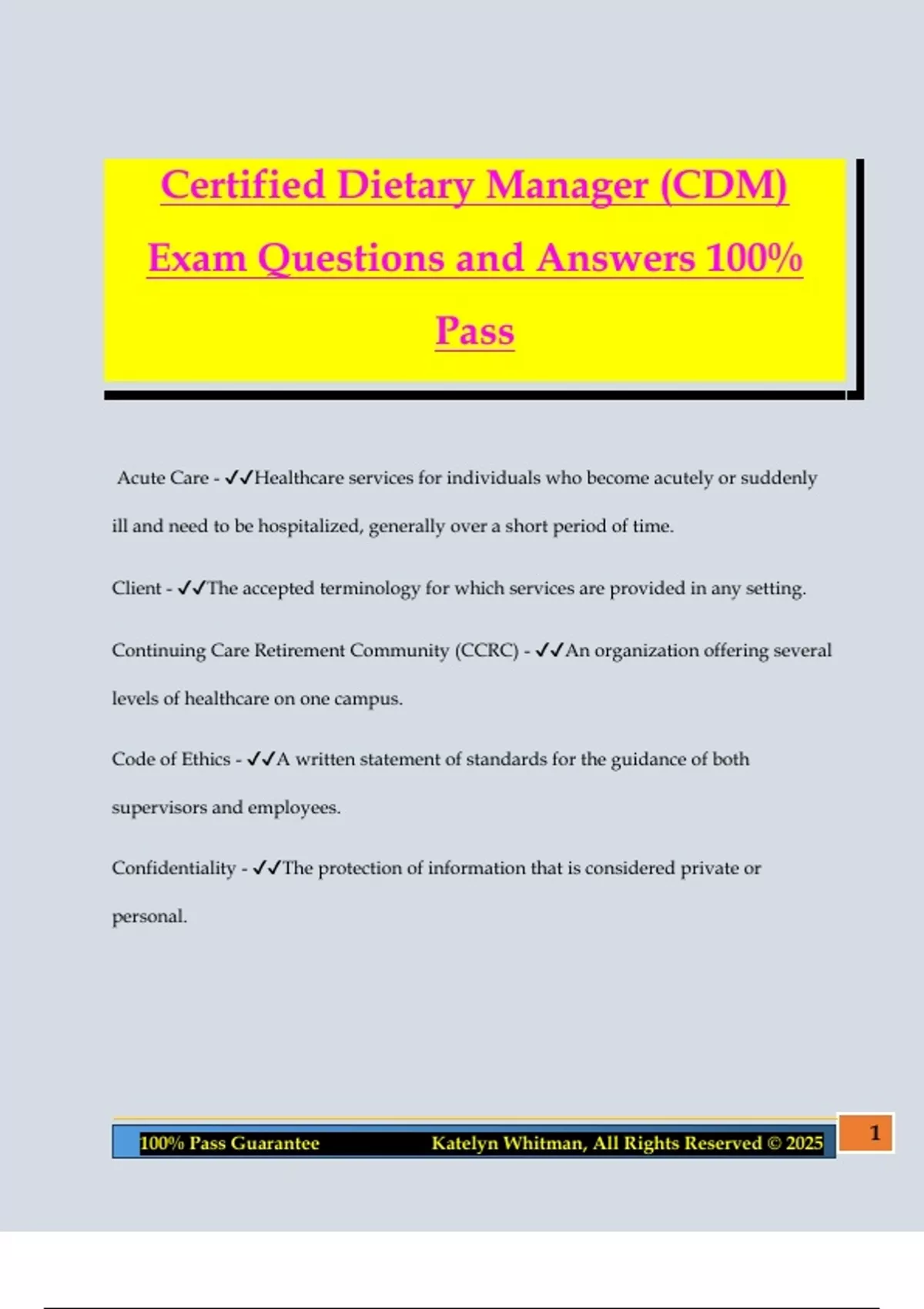 100% Pass Guarantee Katelyn Whitman, All Rights Reserved © 2025 1
