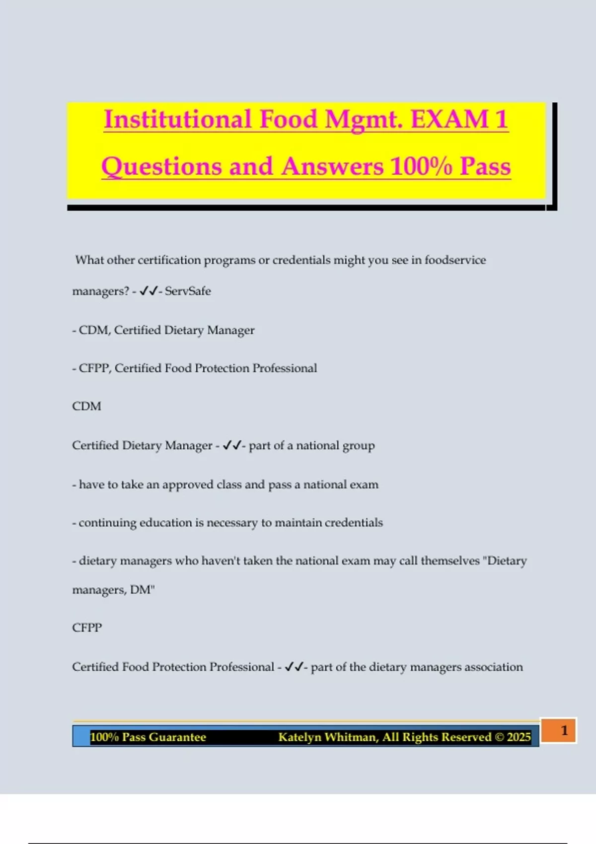 100% Pass Guarantee Katelyn Whitman, All Rights Reserved © 2025 1