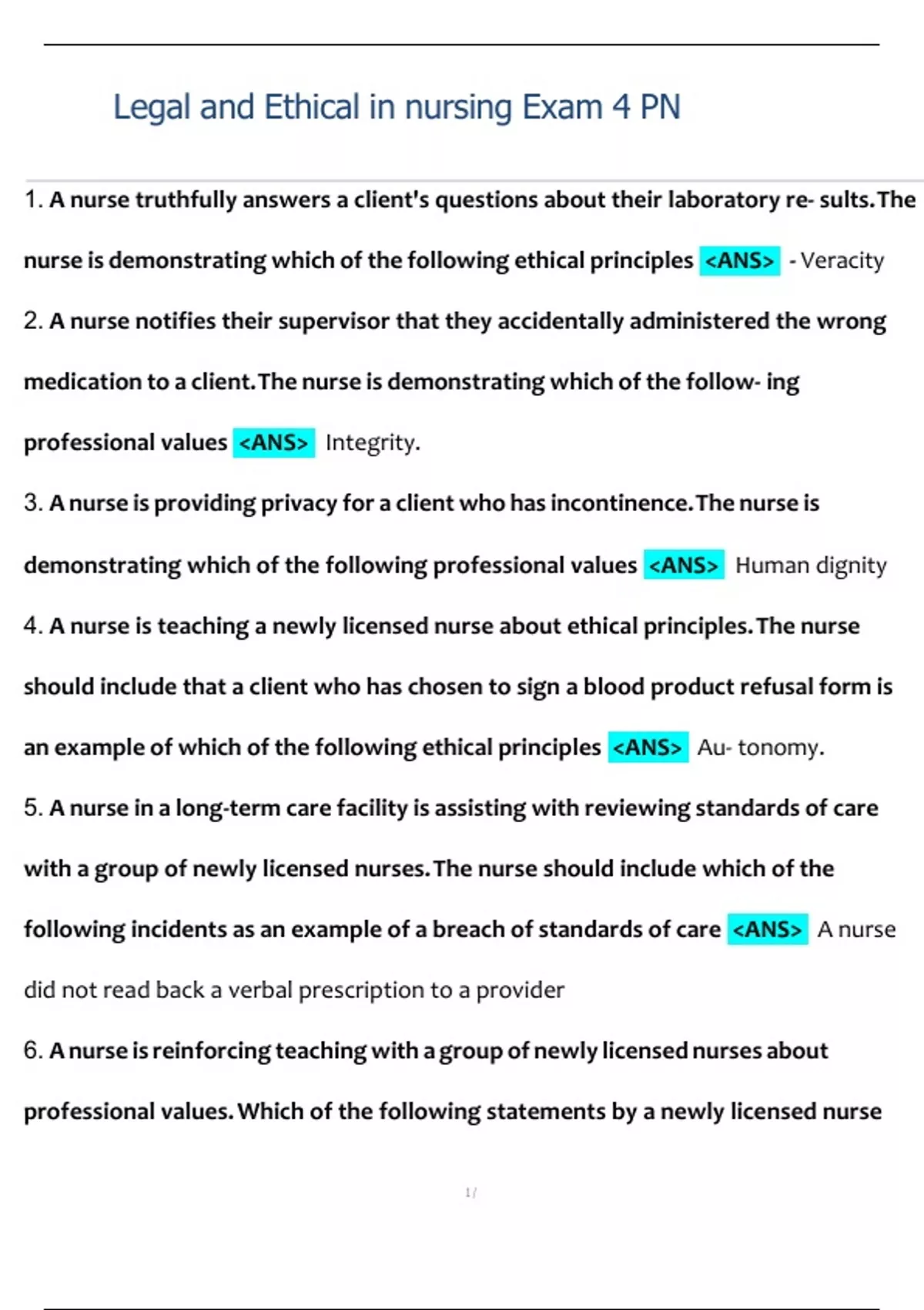 1. A nurse truthfully answers a client's questions about their laboratory re- sults.The