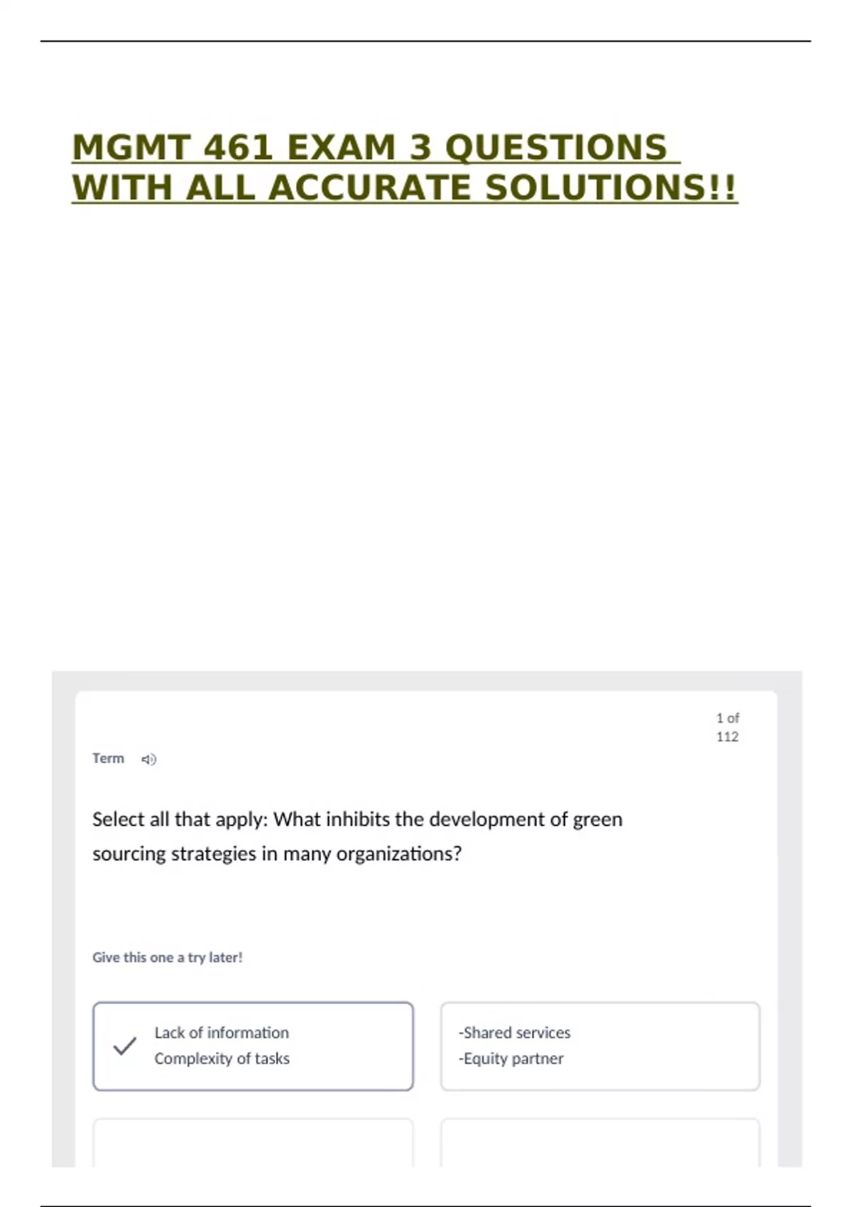 MGMT 461 EXAM 3 QUESTIONS WITH ALL ACCURATE SOLUTIONS!!