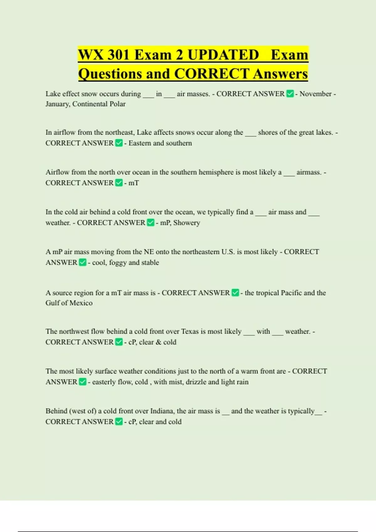 CORRECT ANSWER - cP, clear and cold