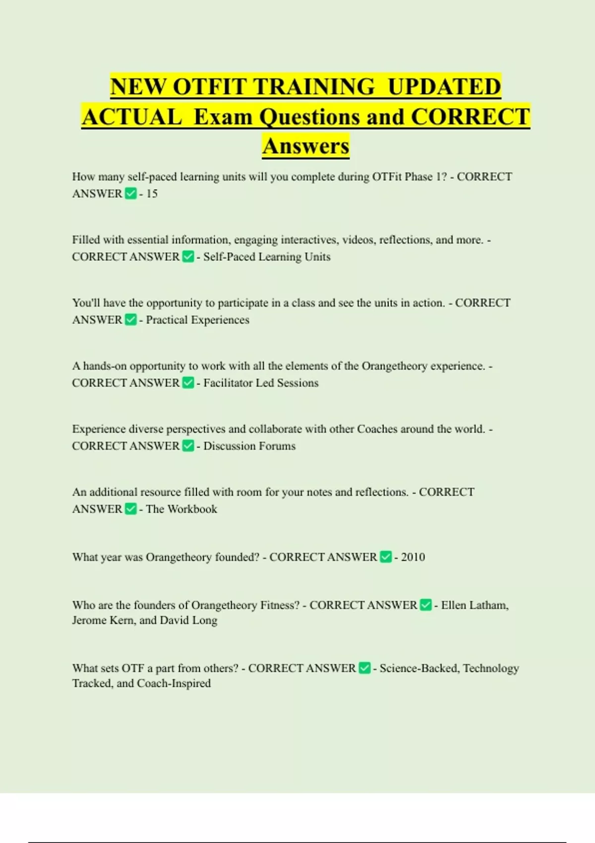 Who are the founders of Orangetheory Fitness? - CORRECT ANSWER - Ellen Latham,