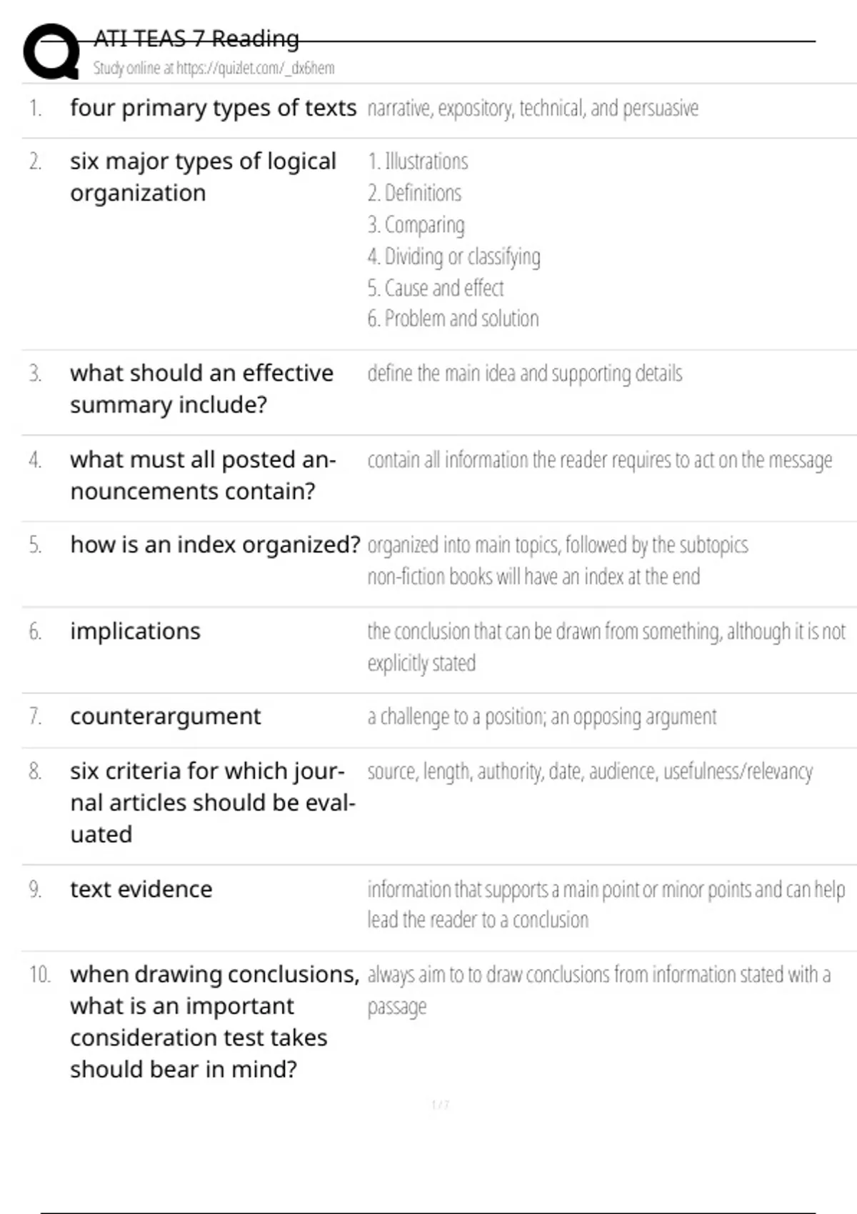ATI TEAS 7_ Reading COMPLETE TERMS WITH DEFINITIONS 100% RATED CORRECT GRADED A+