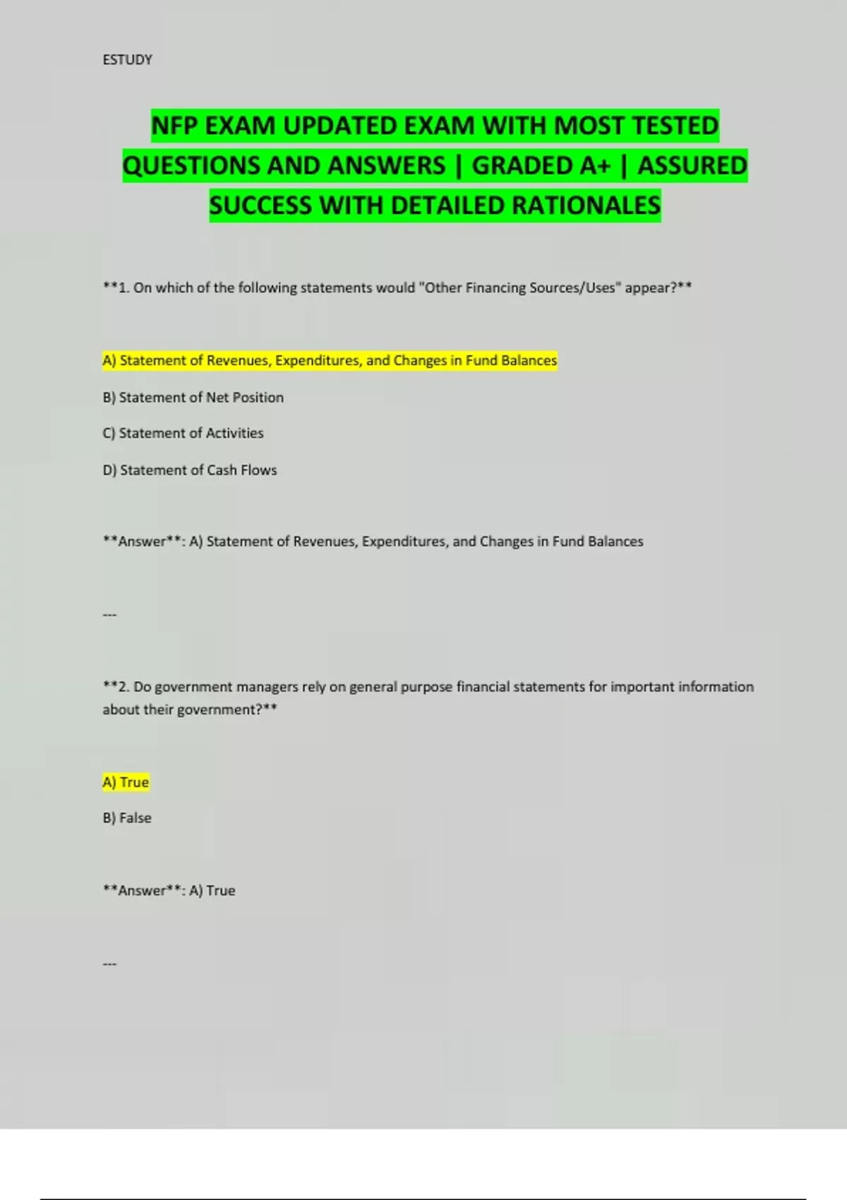 2025 NFP EXAM UPDATED EXAM WITH MOST TESTED QUESTIONS AND ANSWERS | GRADED A+ | ASSURED SUCCESS WITH DETAILED RATIONALES