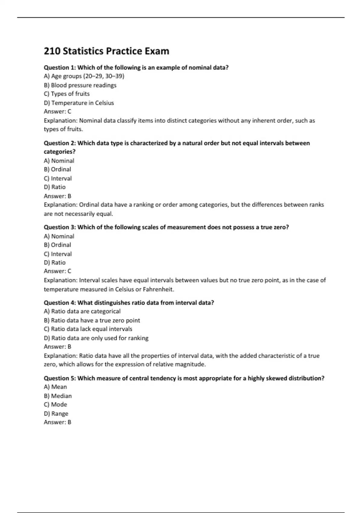 Question 5: Which measure of central tendency is most appropriate for a highly skewed distribution?
