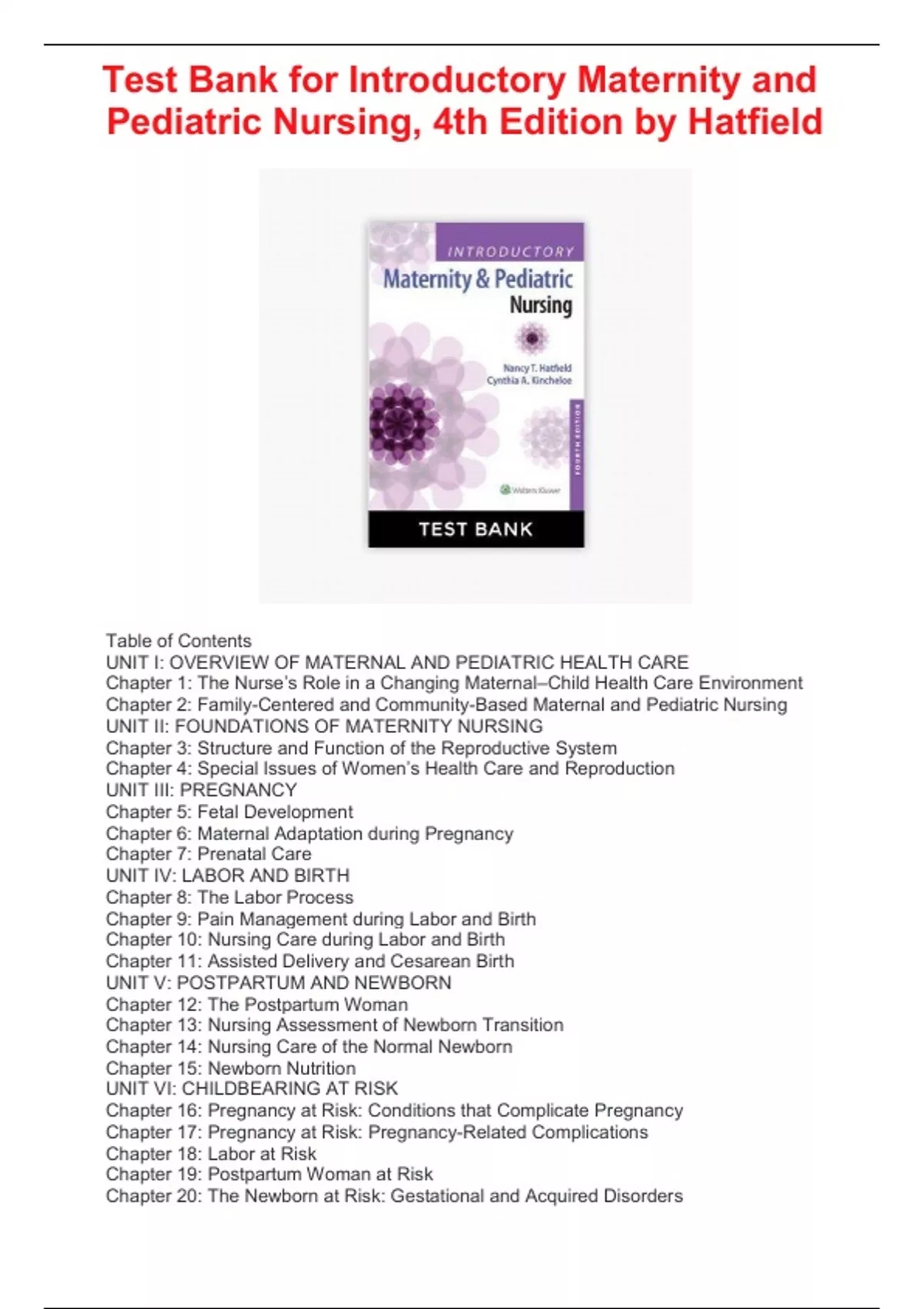 UNIT I: OVERVIEW OF MATERNAL AND PEDIATRIC HEALTH CARE