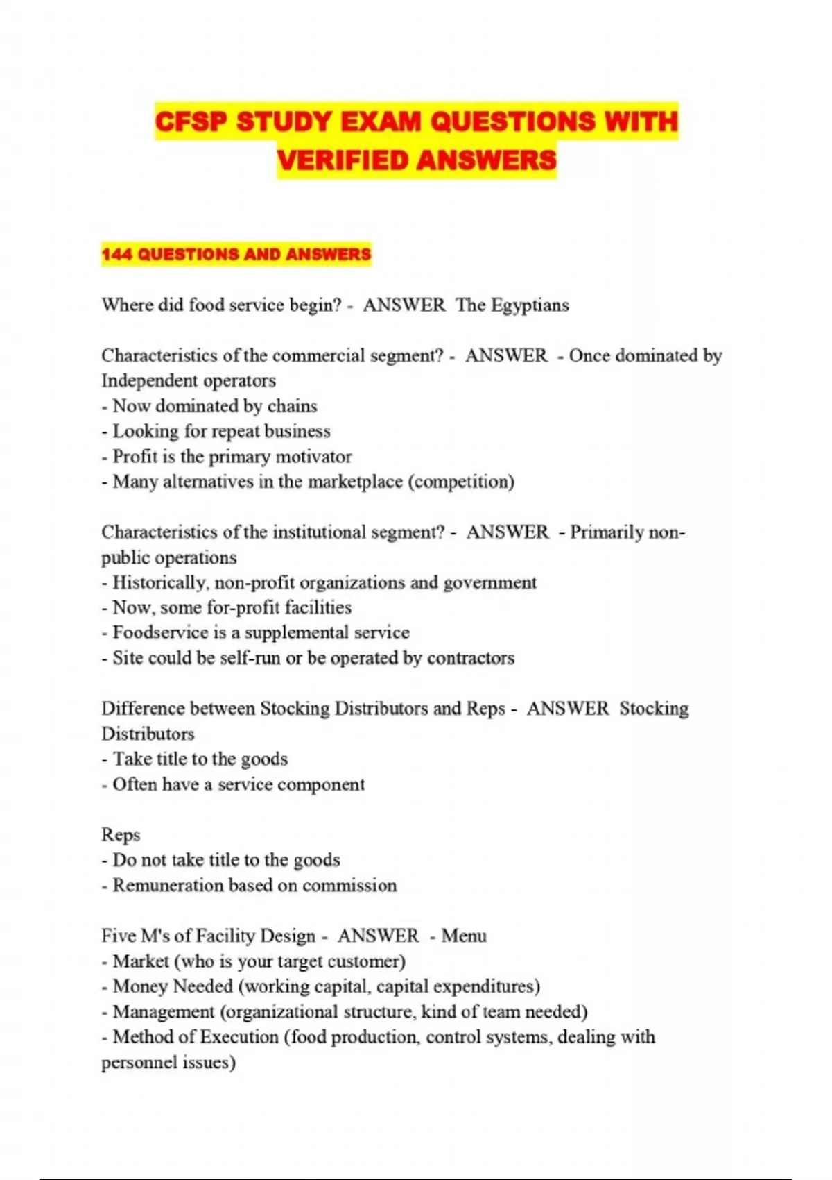 cfsp study exam questions with verified answers