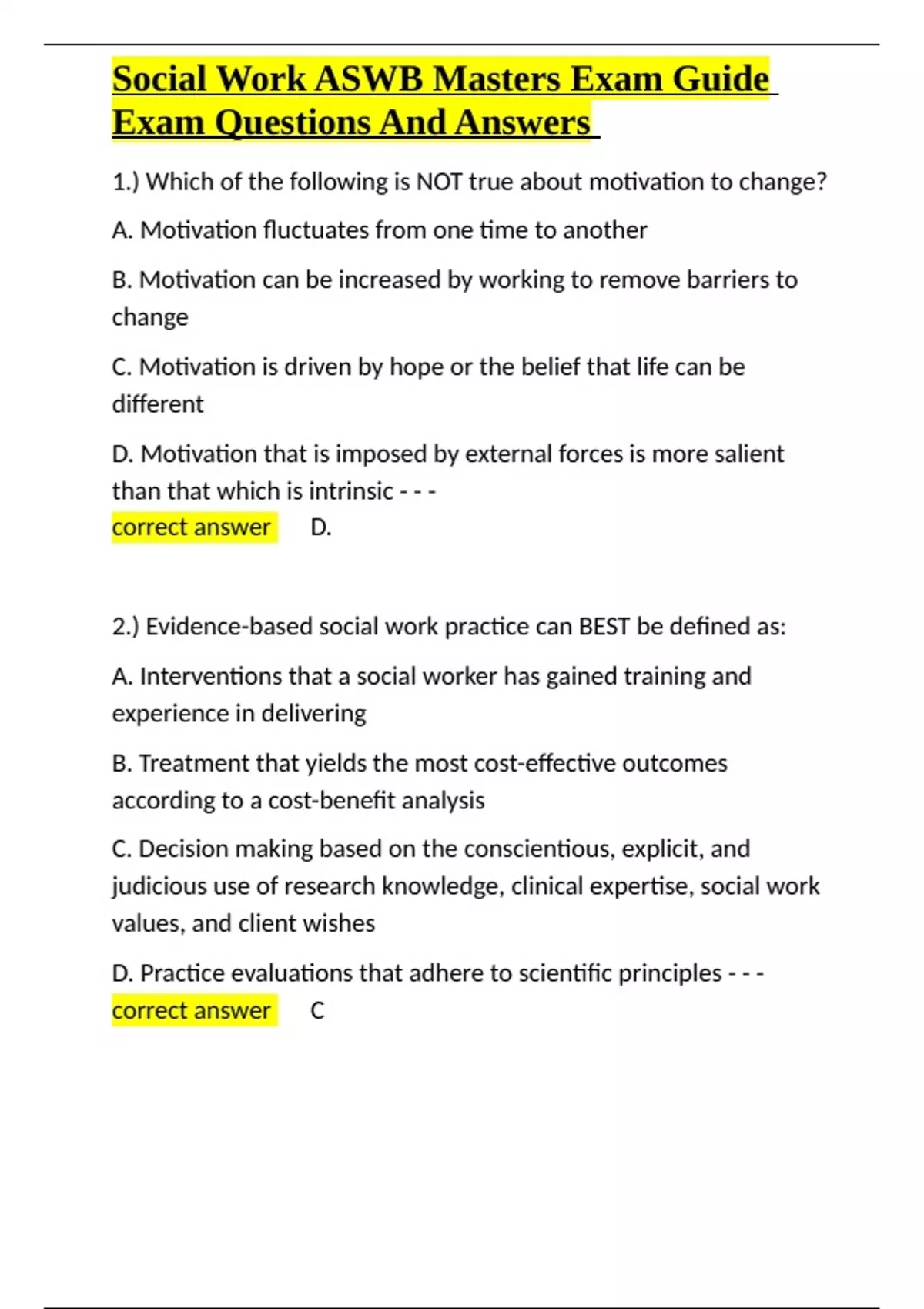 Social Work ASWB Masters Exam Guide Exam Questions And A