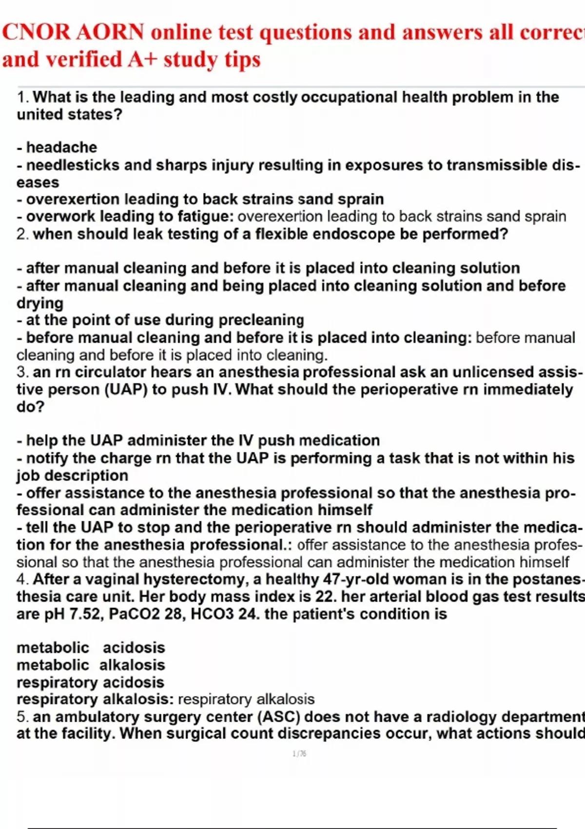CNOR AORN online test questions and answers all correct and verified A+ study CNOR AORN online test questions and answers all correct and verified A+ study CNOR AORN online test questions and answers all correct and verified A+ study CNOR AORN online test questions and answers all correct and verified A+ study
