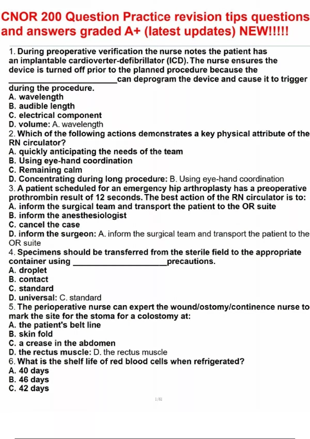 CNOR 200 Question Practice revision tips questions and answers graded A+ (latest updates) NEW!!!!!.pdf CNOR 200 Question Practice revision tips questions and answers graded A+ (latest updates) NEW!!!!!.pdf CNOR 200 Question Practice revision tips questions and answers graded A+ (latest updates) NEW!!!!!.pdf