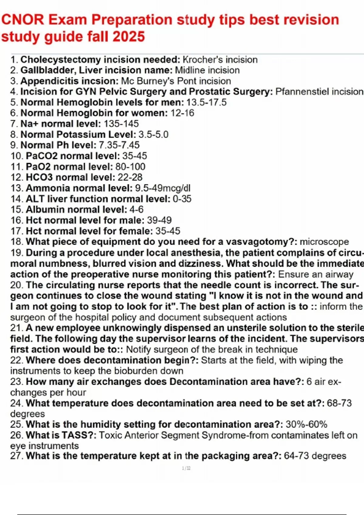 CNOR Practice Exam Prep by CCI exam set questions and answers all correct and verified A+ study CNOR Practice Exam Prep by CCI exam set questions and answers all correct and verified A+ study CNOR Practice Exam Prep by CCI exam set questions and answers all correct and verified A+ study