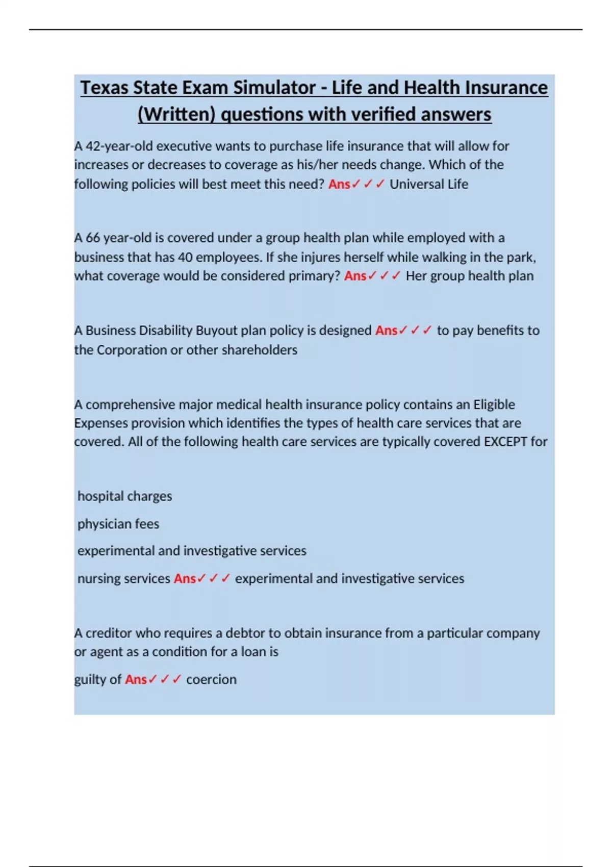 following policies will best meet this need? Ans✓✓✓ Universal Life