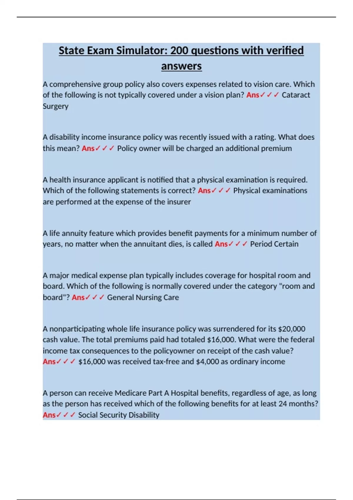 of the following is not typically covered under a vision plan? Ans✓✓✓ Cataract