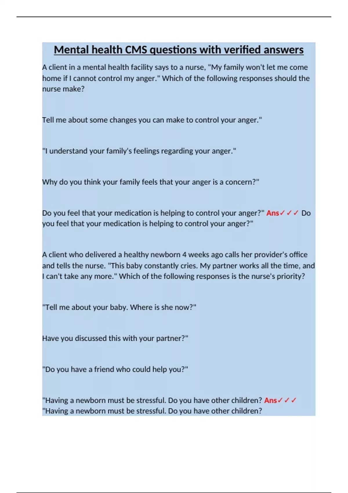 Do you feel that your medication is helping to control your anger?" Ans✓✓✓ Do