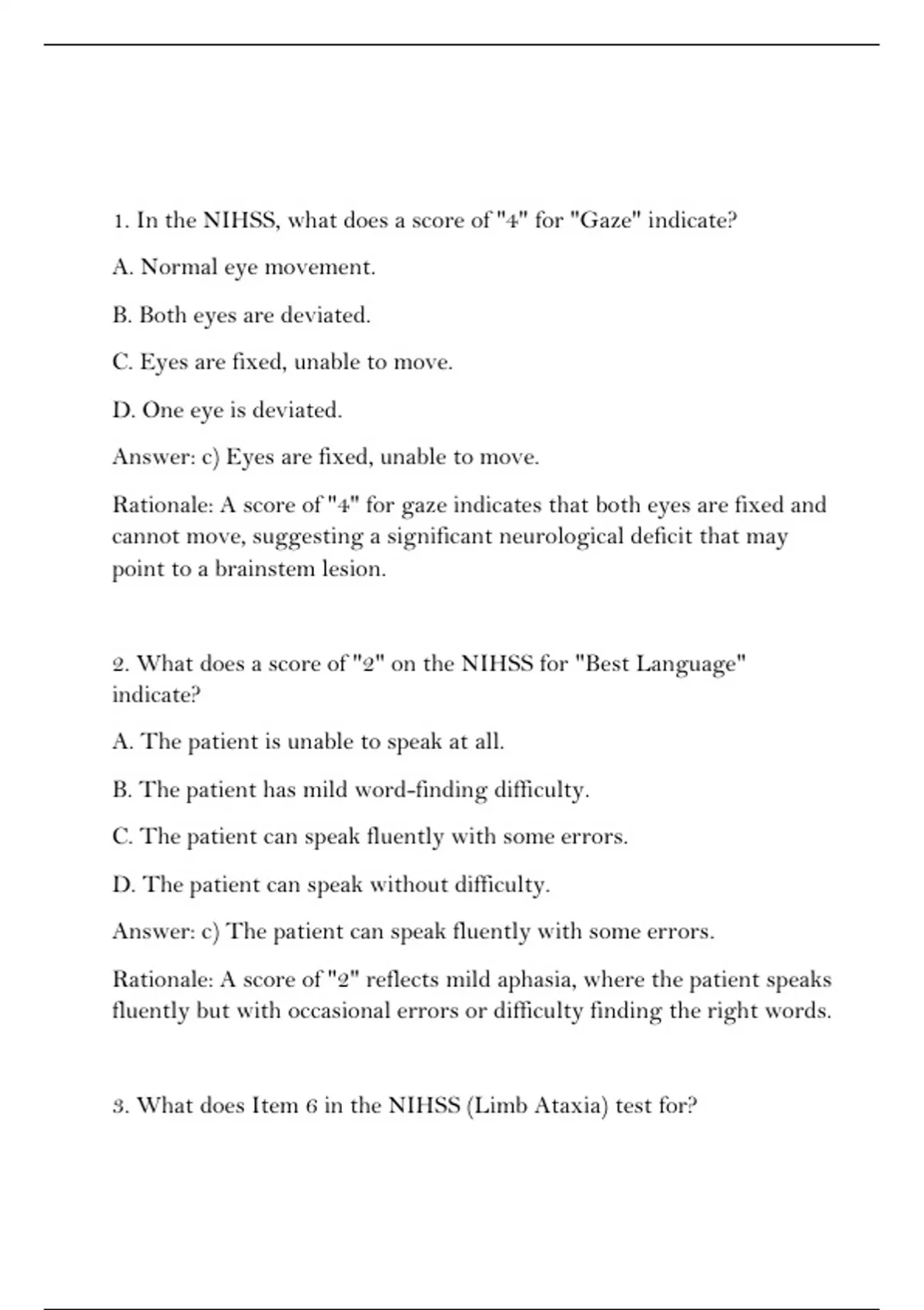 6. Which of the following best describes the NIHSS test for "Motor