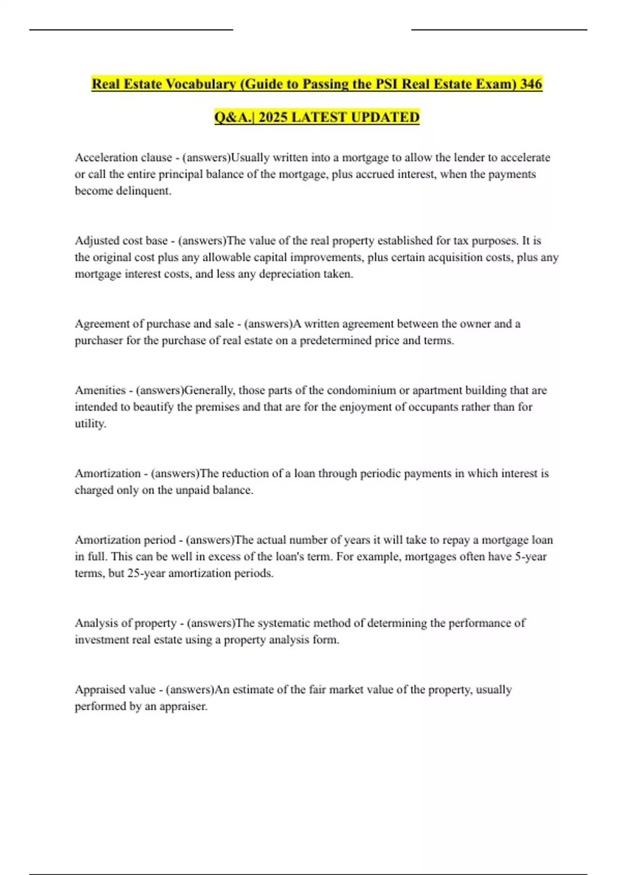 Real Estate Vocabulary (Guide to Passing the PSI Real Estate Exam) 346