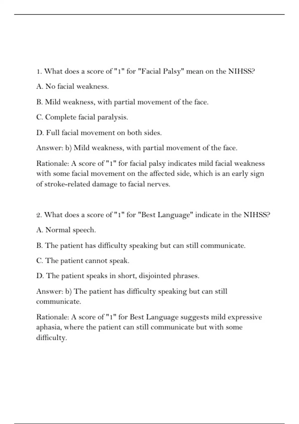 1. What does a score of "1" for "Facial Palsy" mean on the NIHSS?