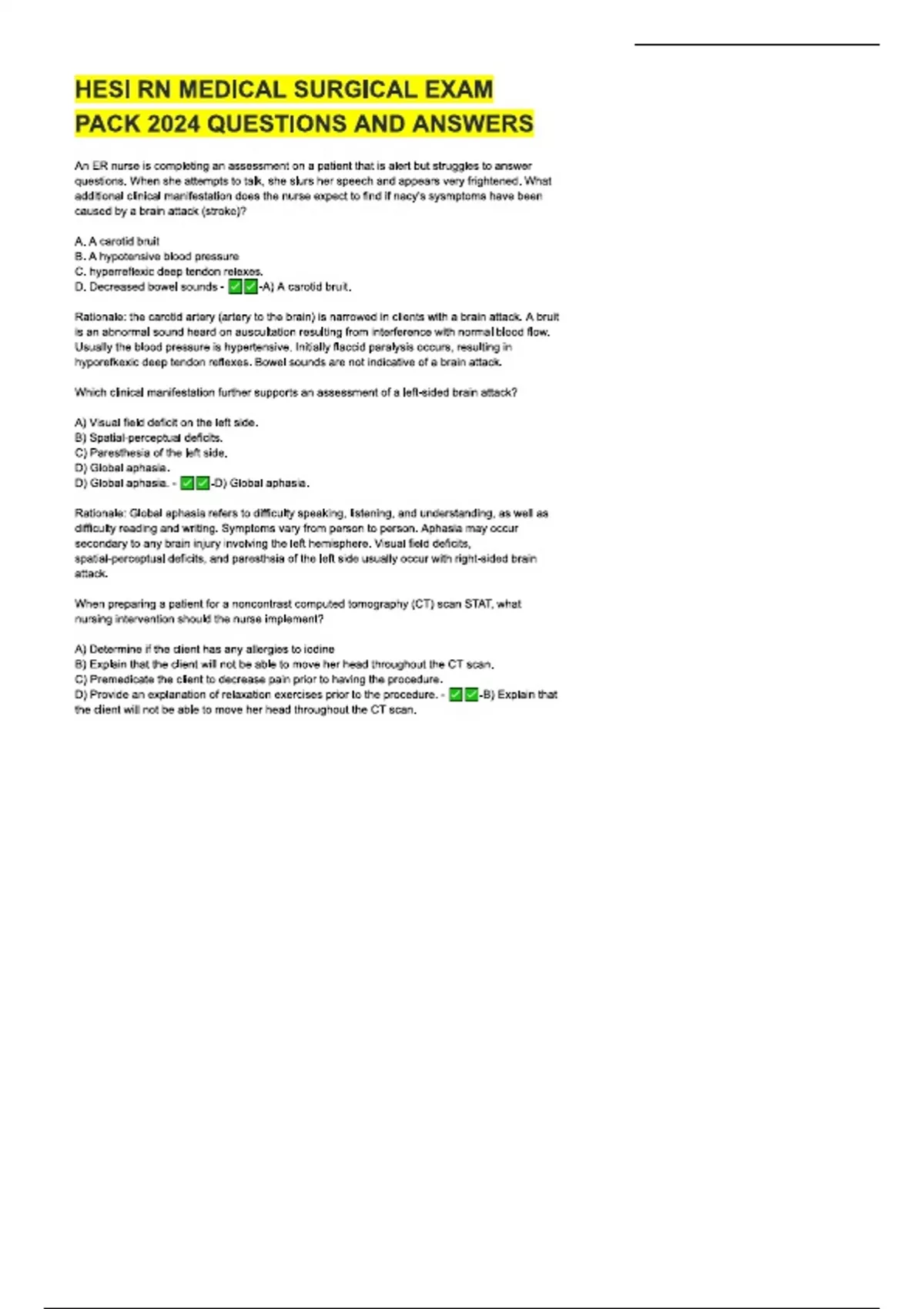 HESI RN MEDICAL SURGICAL EXAM PACK 2024 QUESTIONS AND ANSWERS