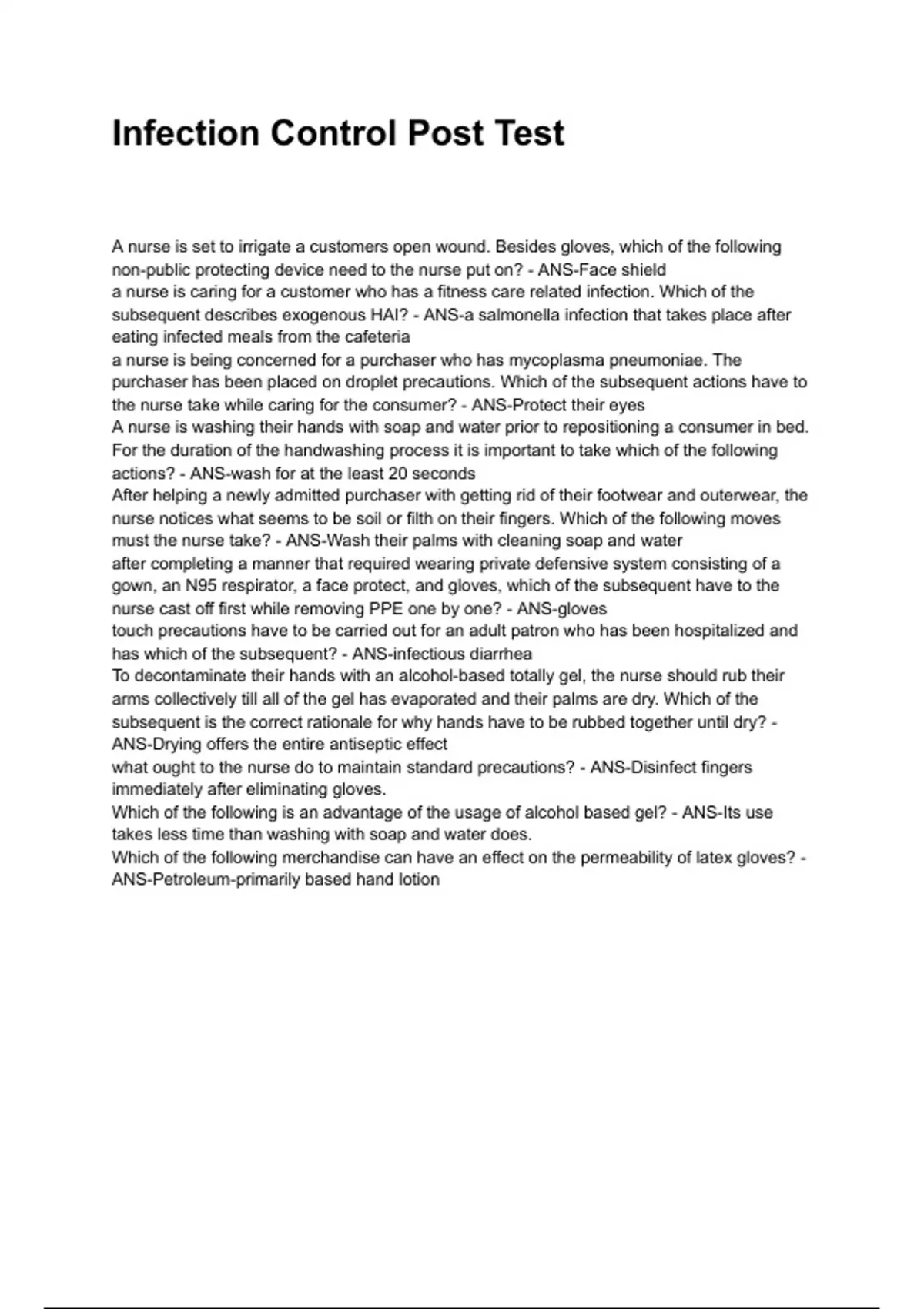 a nurse is caring for a customer who has a fitness care related infection. Which of the