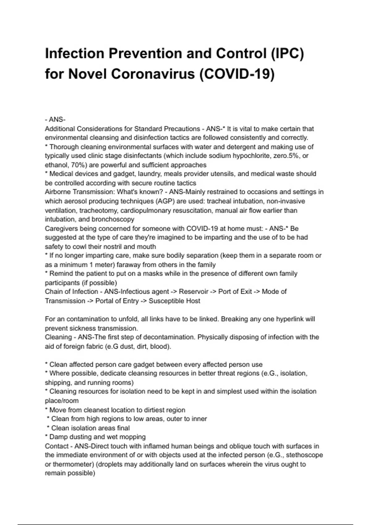 Additional Considerations for Standard Precautions - ANS-* It is vital to make certain that