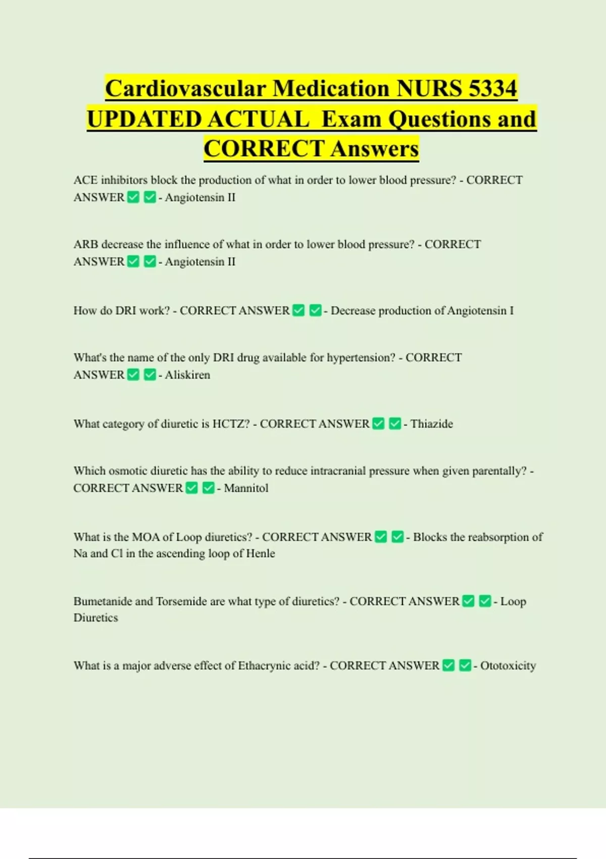 What category of medication are Captopril, Enalapril, and Lisinipril? - CORRECT