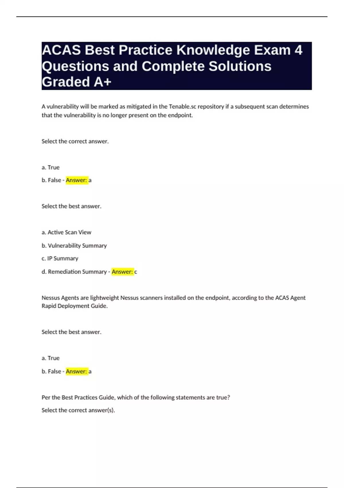 d. Remediation Summary - Answer: c