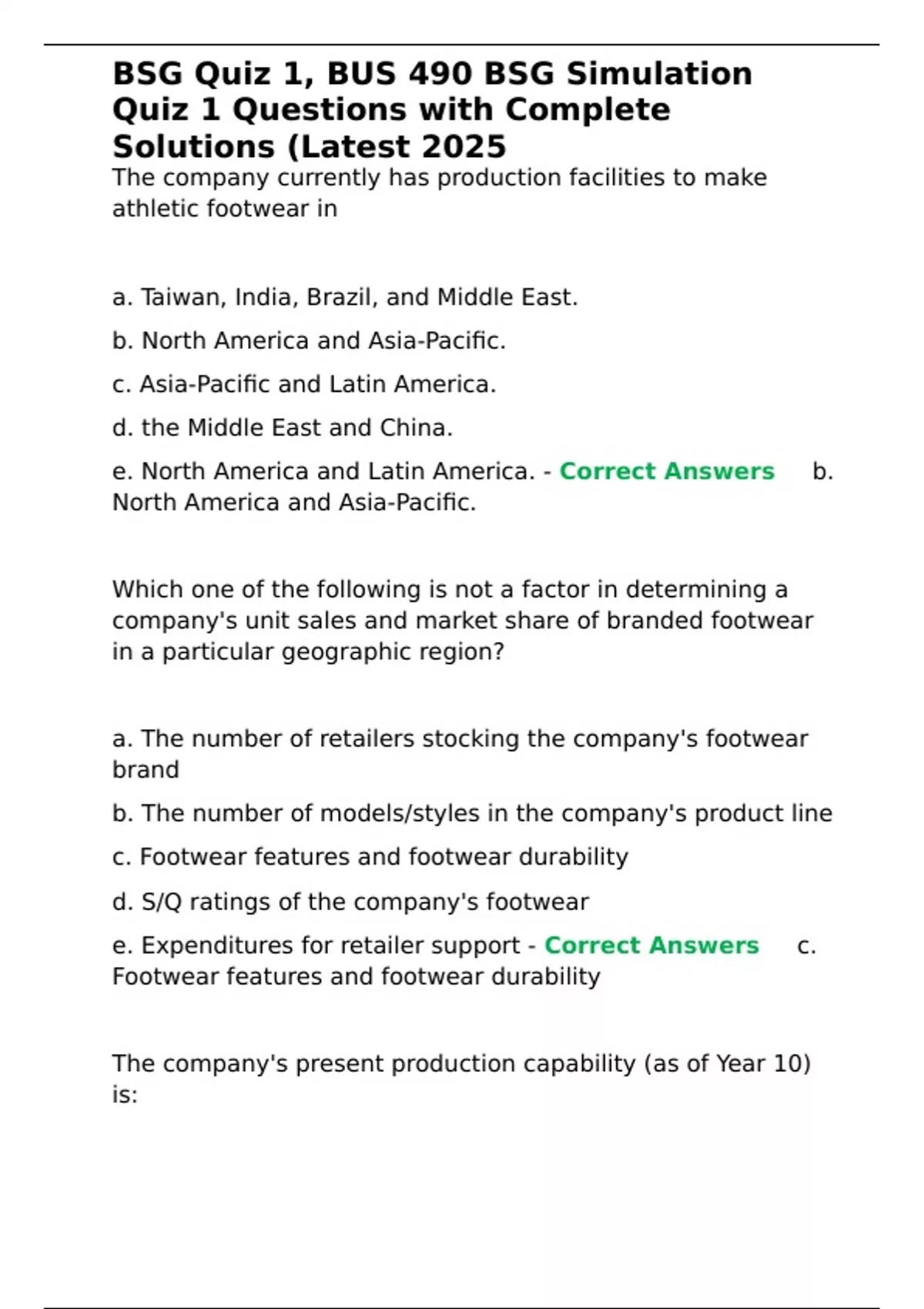 , BSG Quiz 1, BUS 490 BSG Simulation