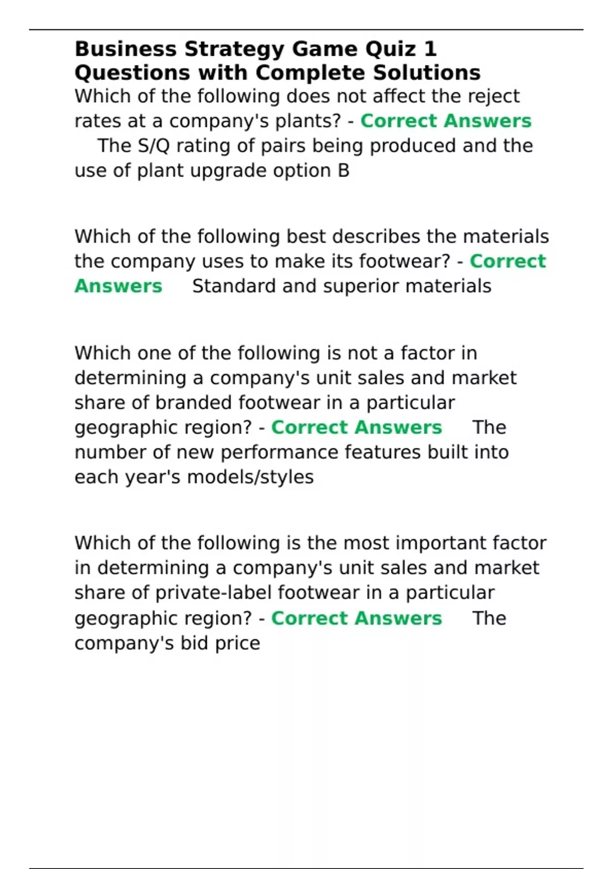 Business Strategy Game Quiz 1 Questions with Complete Solutions