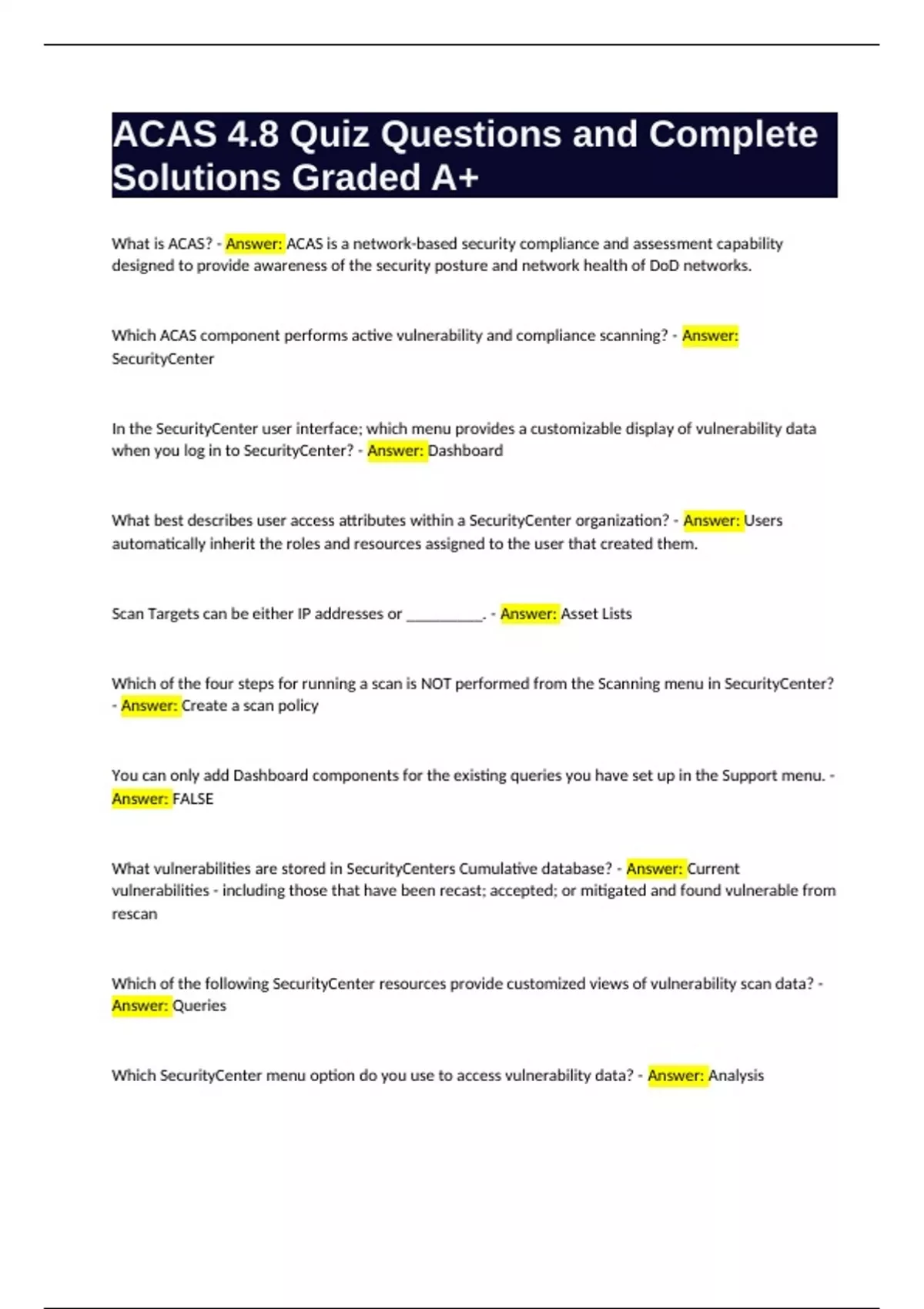What is ACAS? - Answer: ACAS is a network-based security compliance and assessment capability