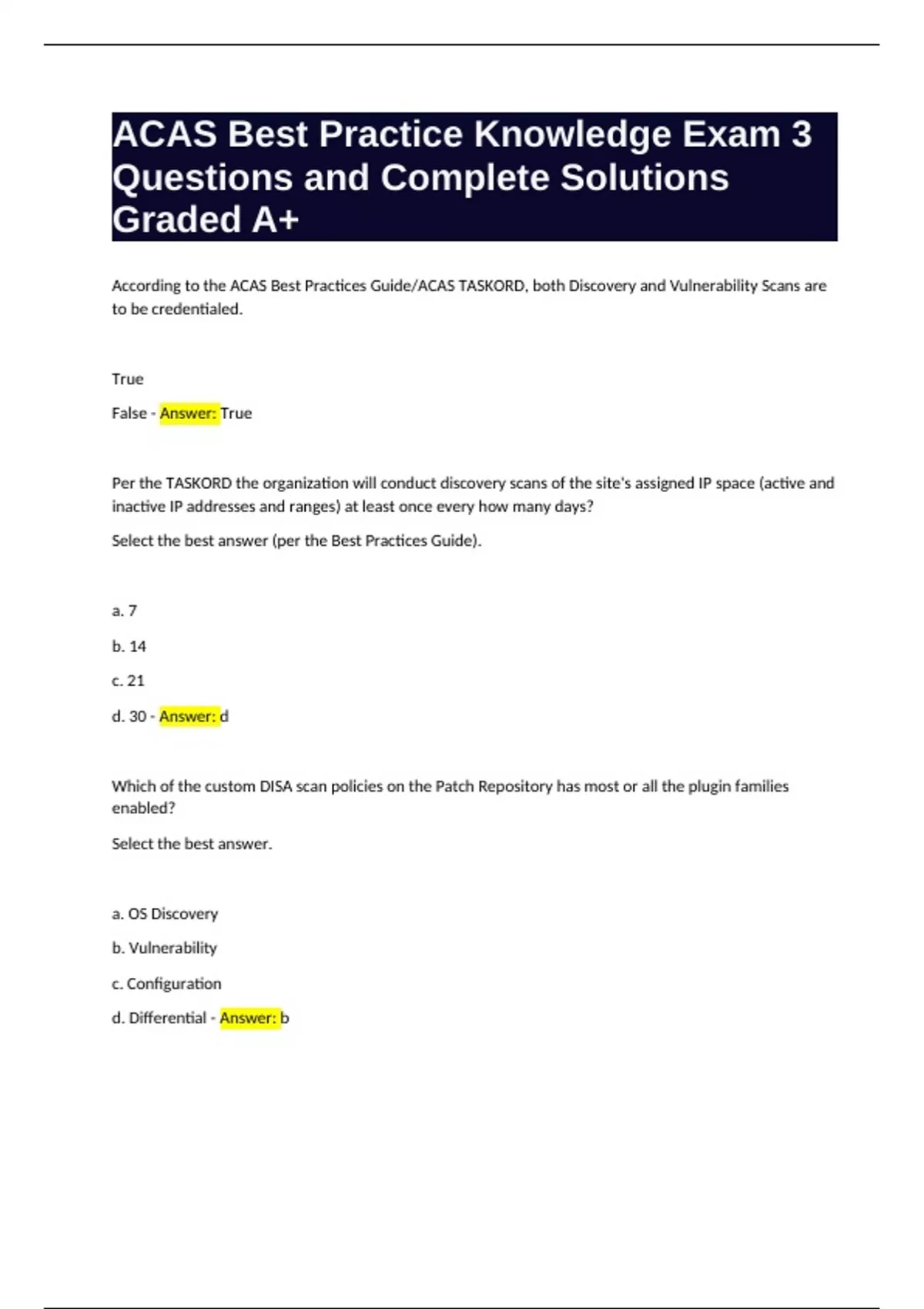 ACAS Best Practice Knowledge Exam 3