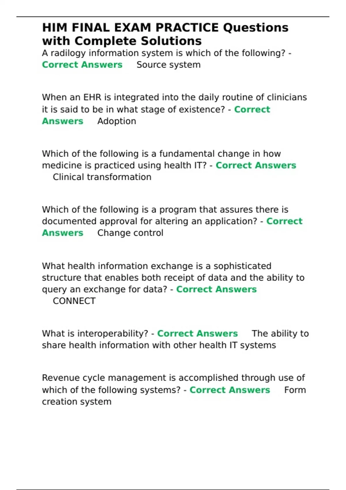 HIM FINAL EXAM PRACTICE Questions with Complete Solutions