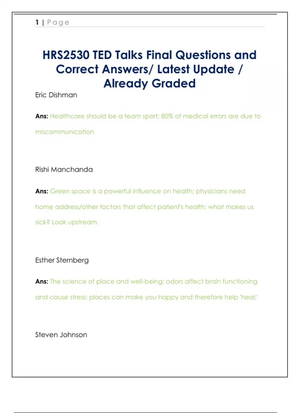 HRS2530 TED Talks Final Questions and Correct Answers/ Latest Update / Already Graded