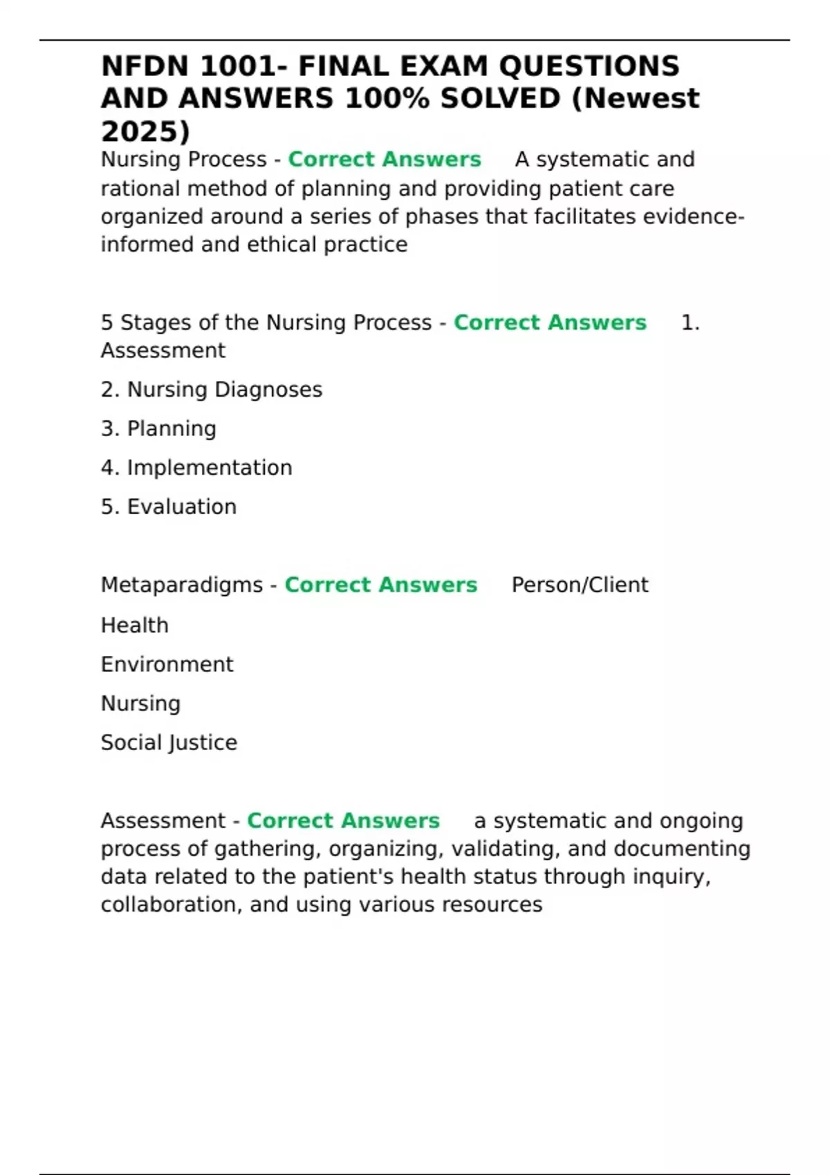 5 Stages of the Nursing Process - Correct Answers ✅1.