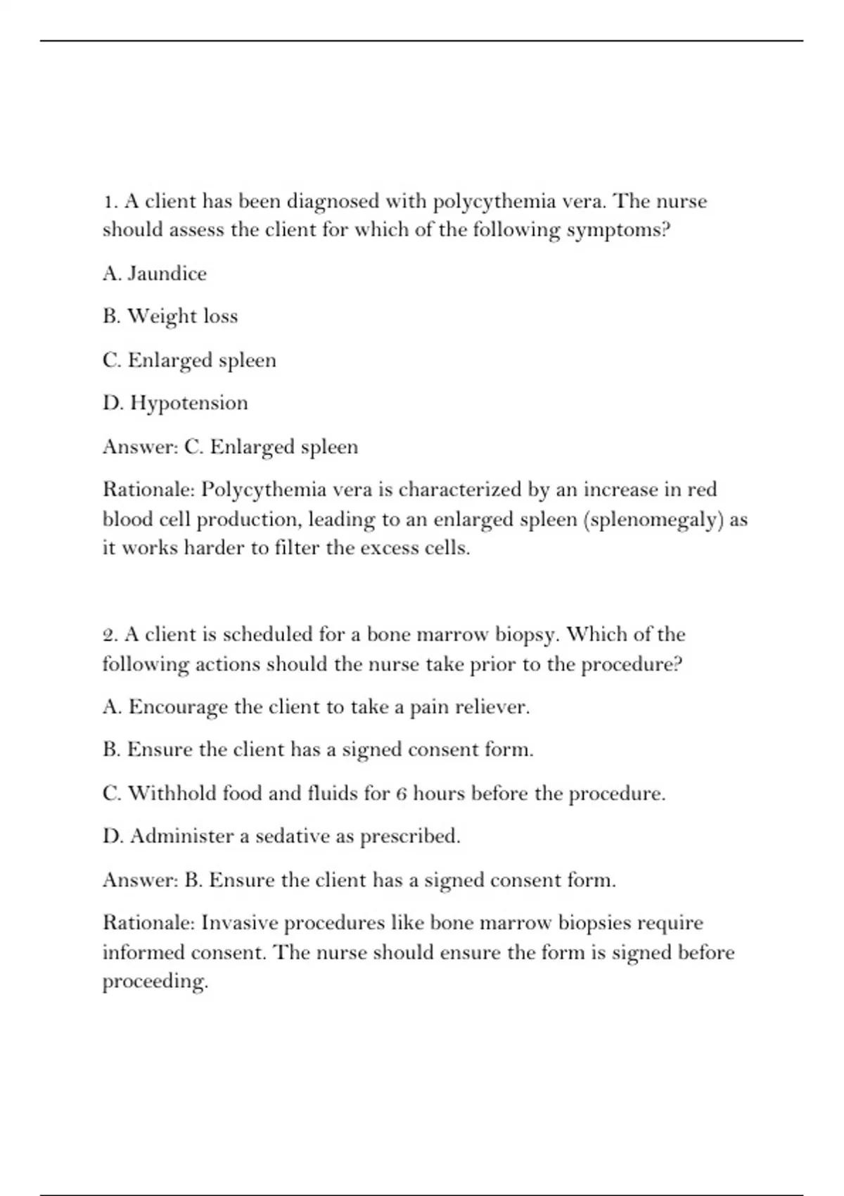 1. A client has been diagnosed with polycythemia vera. The nurse
