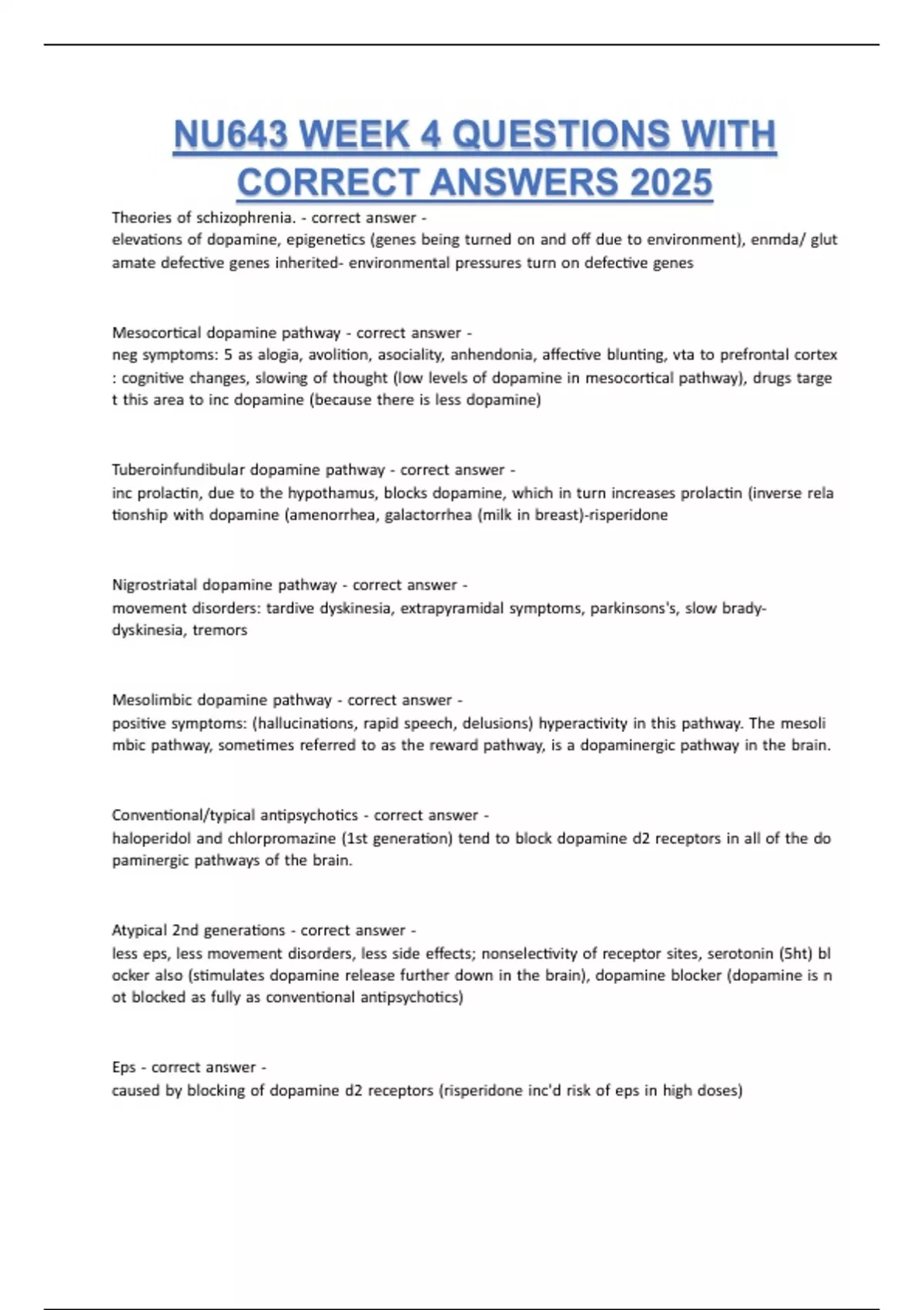 NU643 WEEK 4 QUESTIONS WITH