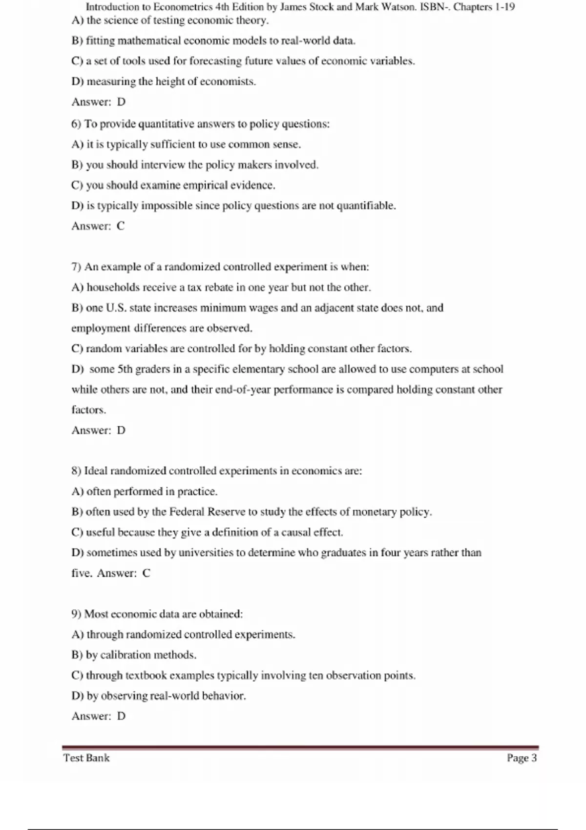 Test Bank for Introduction to Econometrics