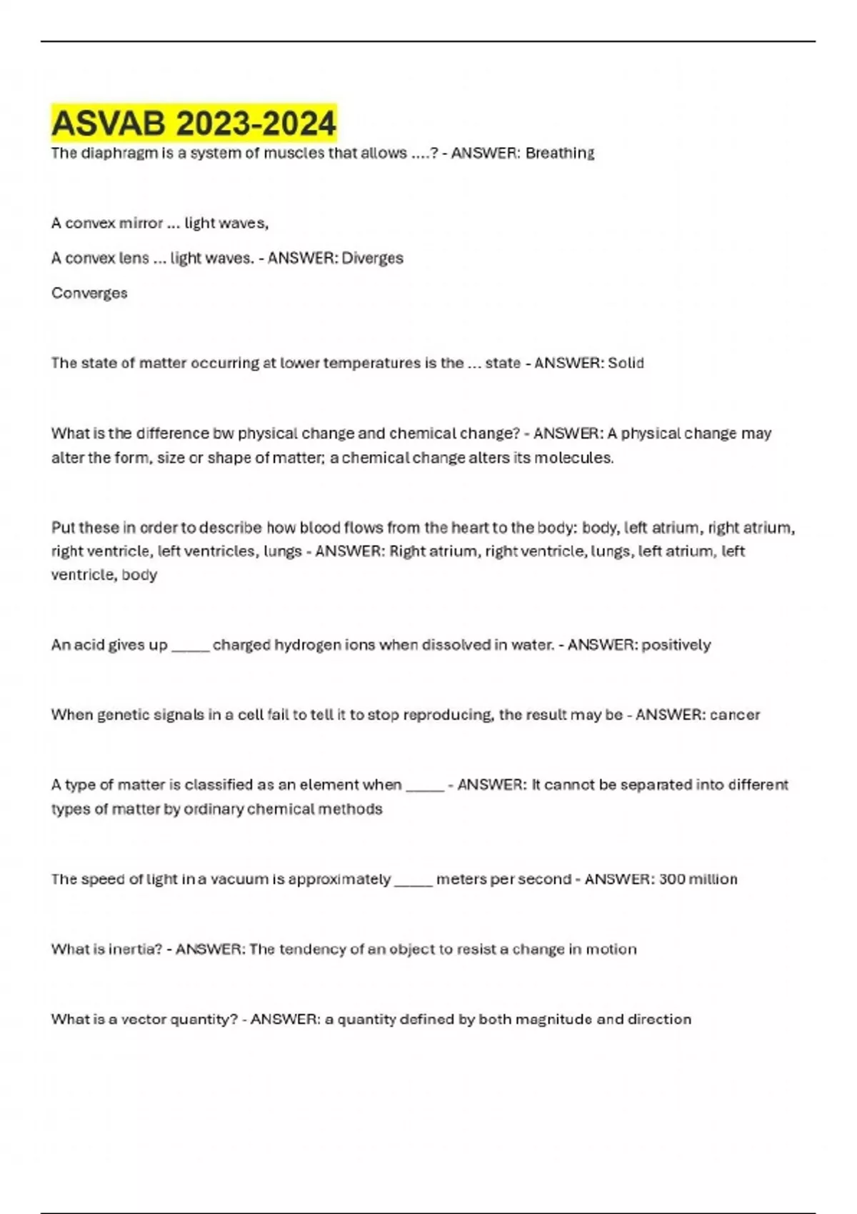 Exam of 18 pages for the course ASVAB at ASVAB (ASVAB)