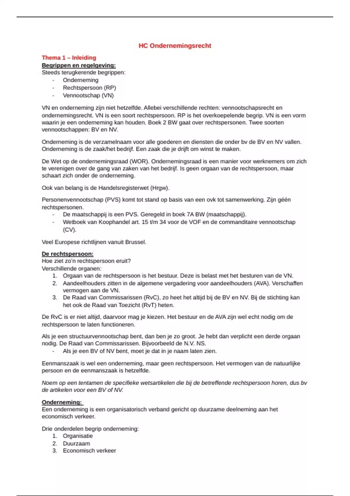 Uitgebreide aantekeningen van alle colleges ondernemingsrecht, kennisclips en arresten