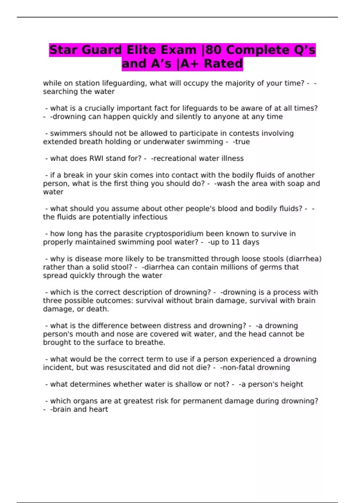 Star Guard Elite Exam |80 Complete Q’s