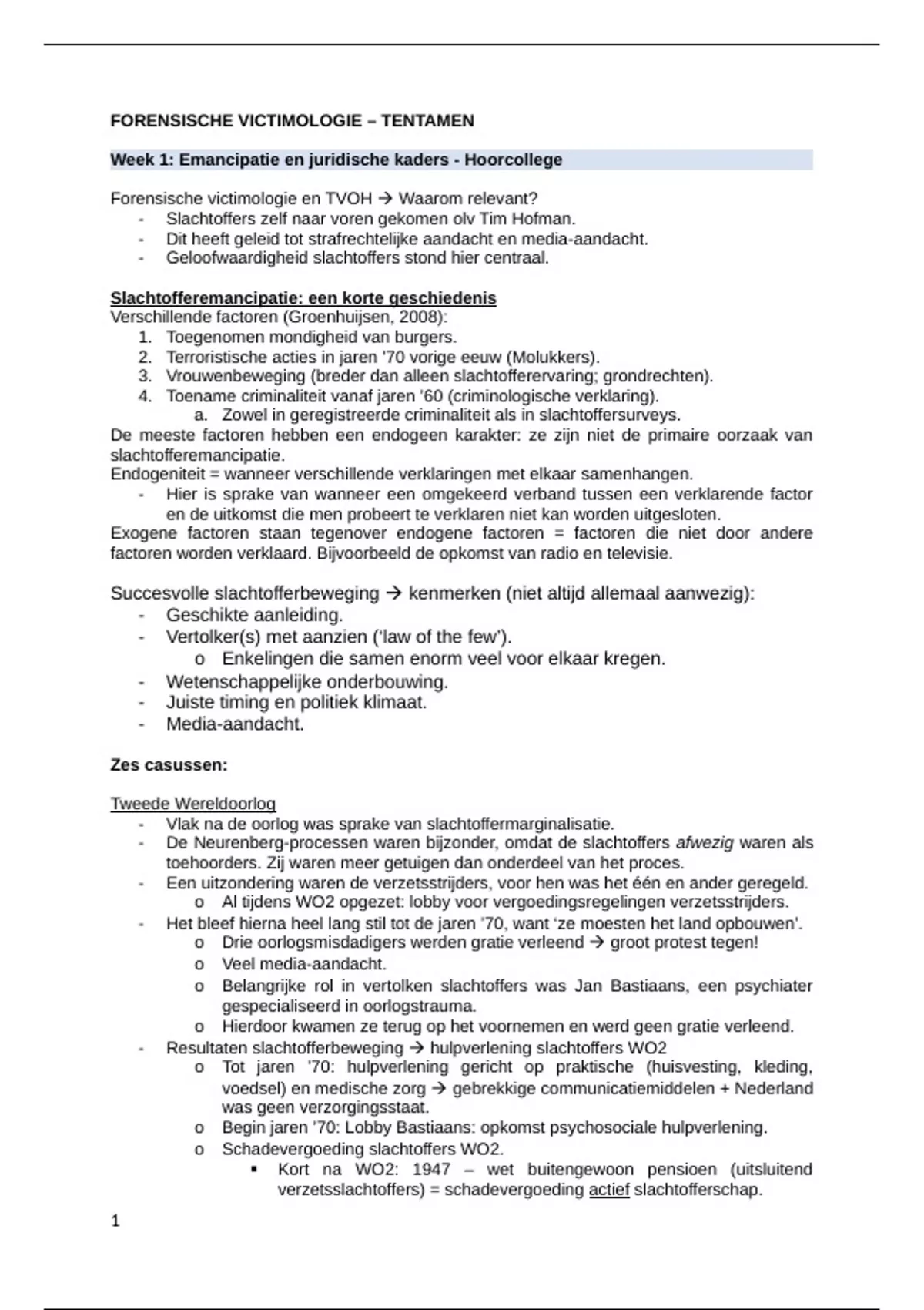 Samenvatting Forensische Victimologie - hoorcolleges + verplichte literatuur
