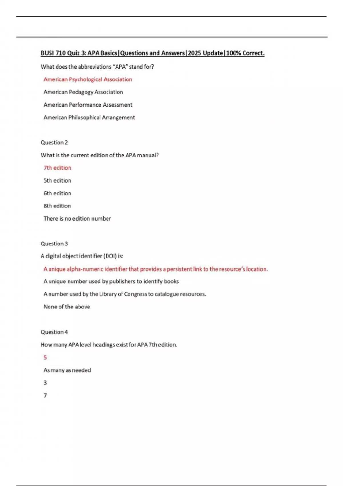 BUSI 710 Quiz 2: APA Basics|Questions and Answers|2025 Update|100% Correct.