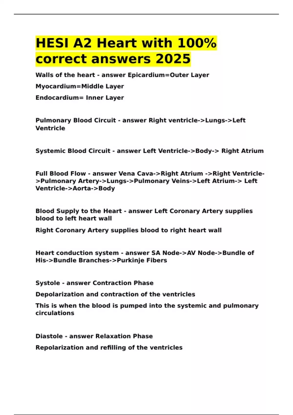 Heart conduction system - answer SA Node->AV Node->Bundle of