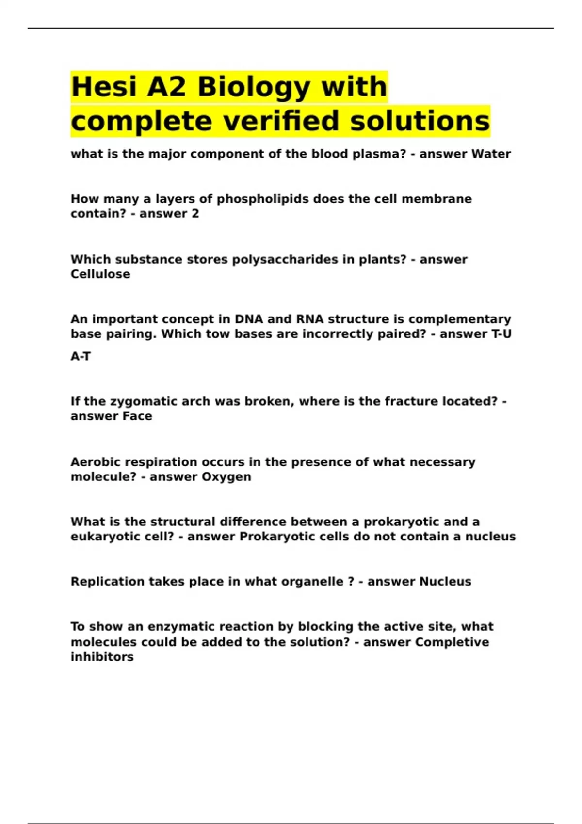 Hesi A2 Biology with