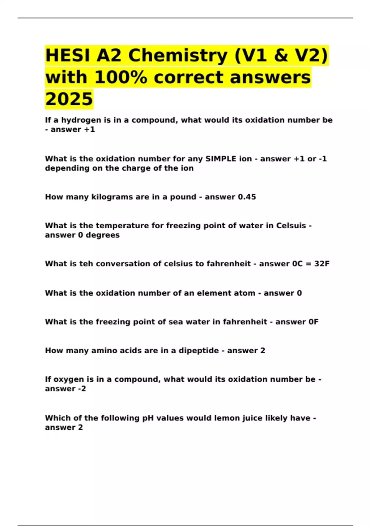 HESI A2 Chemistry (V1 & V2)