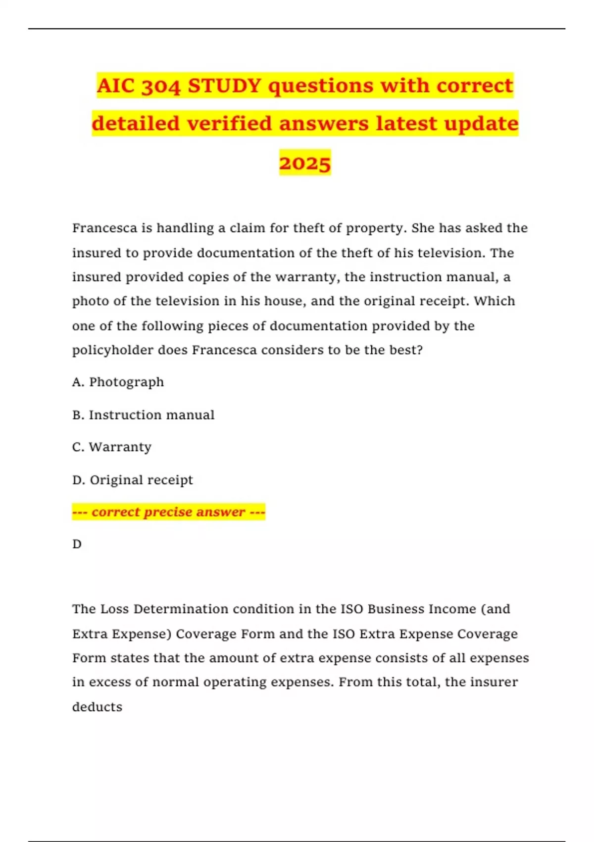 Extra Expense) Coverage Form and the ISO Extra Expense Coverage