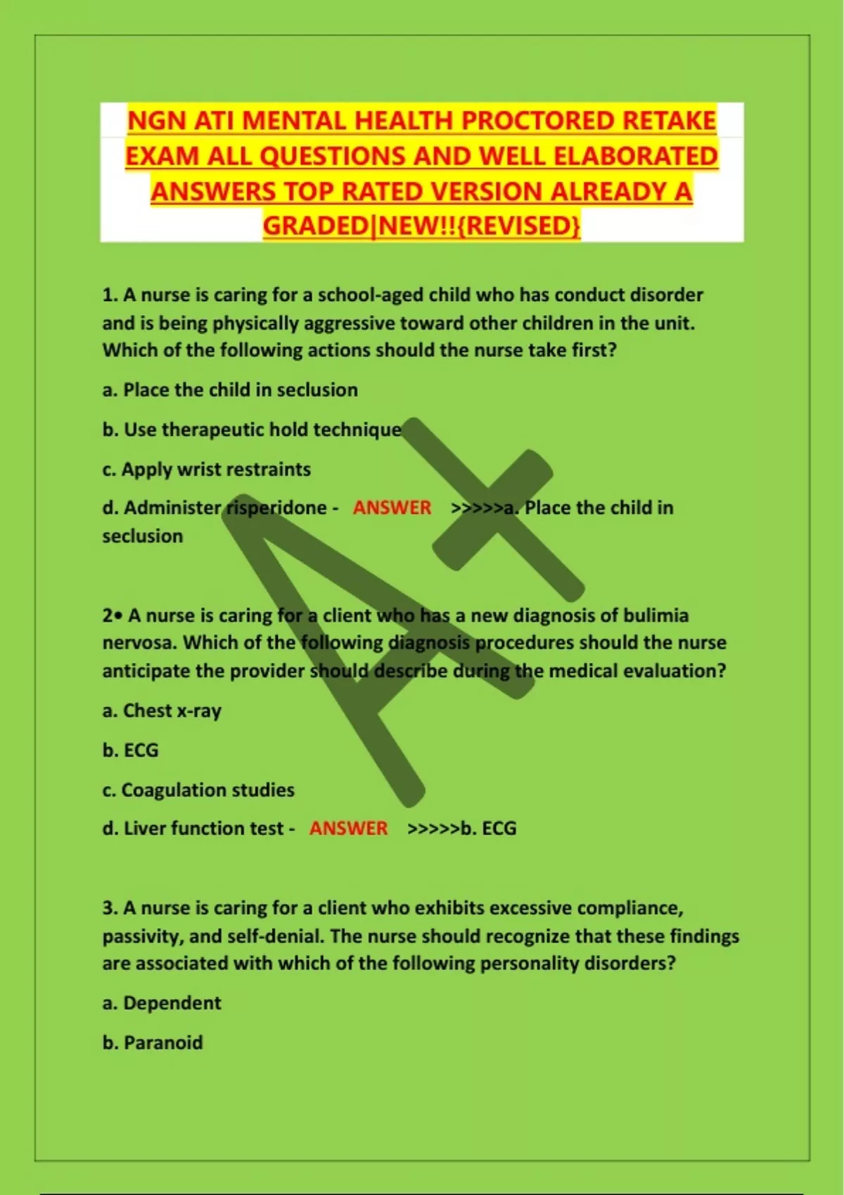 NGN ATI MENTAL HEALTH PROCTORED RETAKE