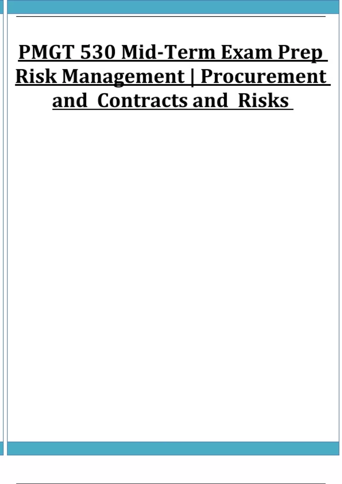 , 5/1/2021 Midterm Exam: Risk Management: PMGT 530-50- A-2021/Late Spring - Procurement Contracts and Risk